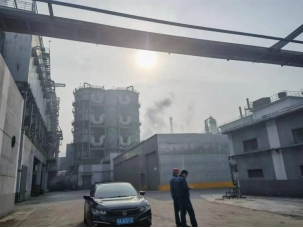 东侧脱硫脱硝装置(左),右侧焦油装卸车装置和备件库 |